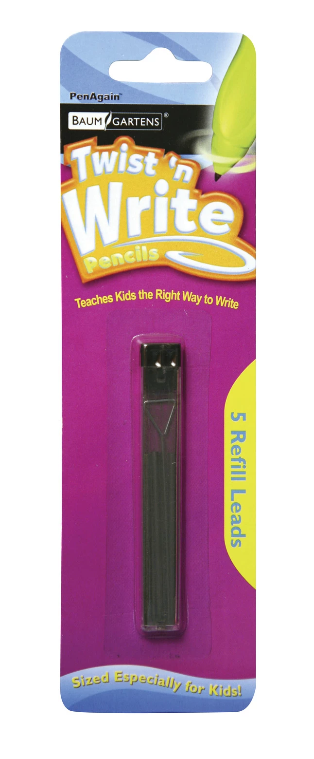 Baumgartens Lead Refill contains 5 leads and is suitable for Penagain Twist ‘n Write Pencil (sold separately). Twist ‘n Write Pencils are crafted for a firm fit in smaller hands, and come outfitted with ergonomic grips that promote correct finger posture while students work through each and every assignment.