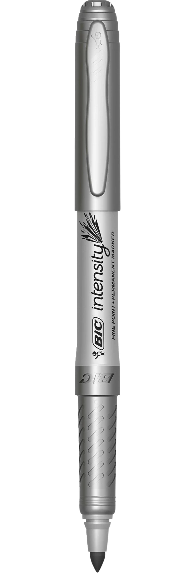BIC Intensity Permanent Marker features a fine tip which doesn’t dry out when the cap is left off for two weeks. Acid-free ink and soft grip offers comfort. Fade-resistant, vivid ink long-lasting color which stays permanent on most hard-to-mark surfaces. Set includes 2 markers, 1 each of gold and silver.
