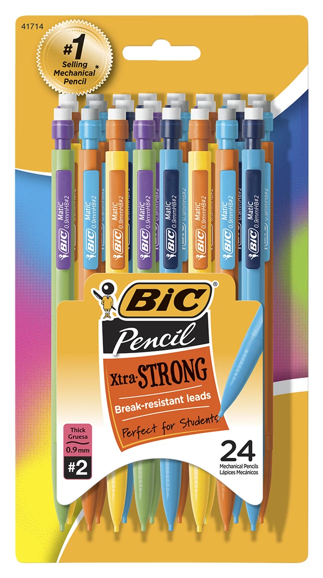 BIC Xtra Strong Non-Refillable Mechanical Pencil with Clips offers a writing experience without the hassle of sharpening or refilling. Barrel is latex-free and is filled with 3 full-length, 0.9 mm, self-feeding Number 2 leads.