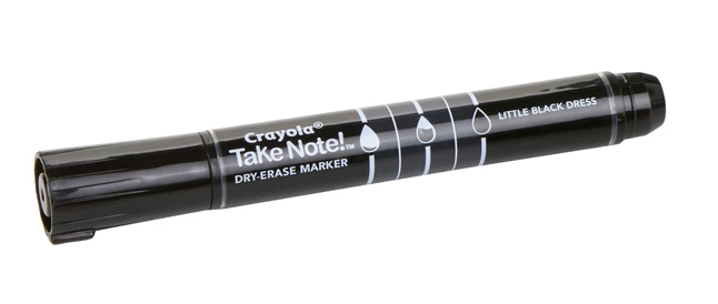 Crayola Take Note! Dry Erase Markers are quick to dry but easy to erase! Vibrant colors are great for bold messages on most white boards. Each marker has a chisel tip that is perfect for thick or thin lines and features an ink level indicator so you always know when itβs time to restock. The markers are low odor, making them ideal for classrooms, offices, and meeting rooms.