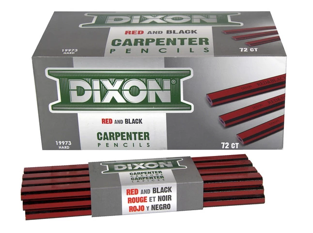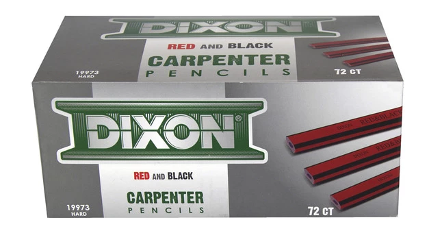 Dixon Carpenter Pencils are the best known pencils for carpenters. Flat pencil lays down a long lasting, smooth, rich black mark. Red pencils with black stripe are easy to see and easy to sharpen. Available with Soft, Medium, Hard and Economy Medium graphite core. PMA Certified non-toxic. Hard graphite core.