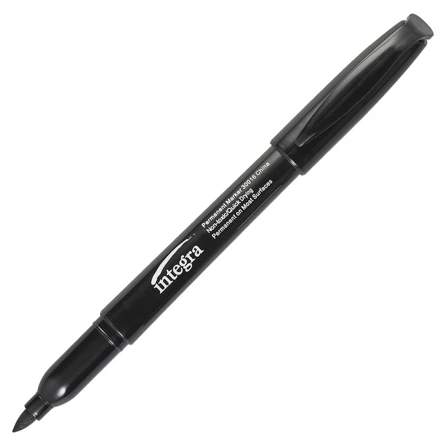 Integra Black Fine Point Permanent Marker features fade and water resistant, quick drying ink. It comes with a sturdy tip and assures indelible mark on most surfaces. It is sold as 12 per pack.
