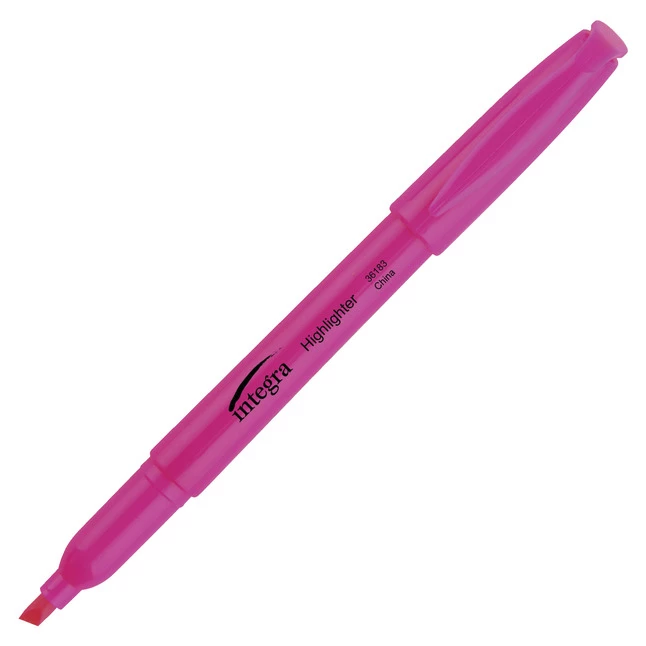 Integra Pen-Style Fluorescent Pink Highlighter features a chisel tip that provides wide and narrow lines when needed. Ink is quick drying and odorless and is sold as 12 per pack.