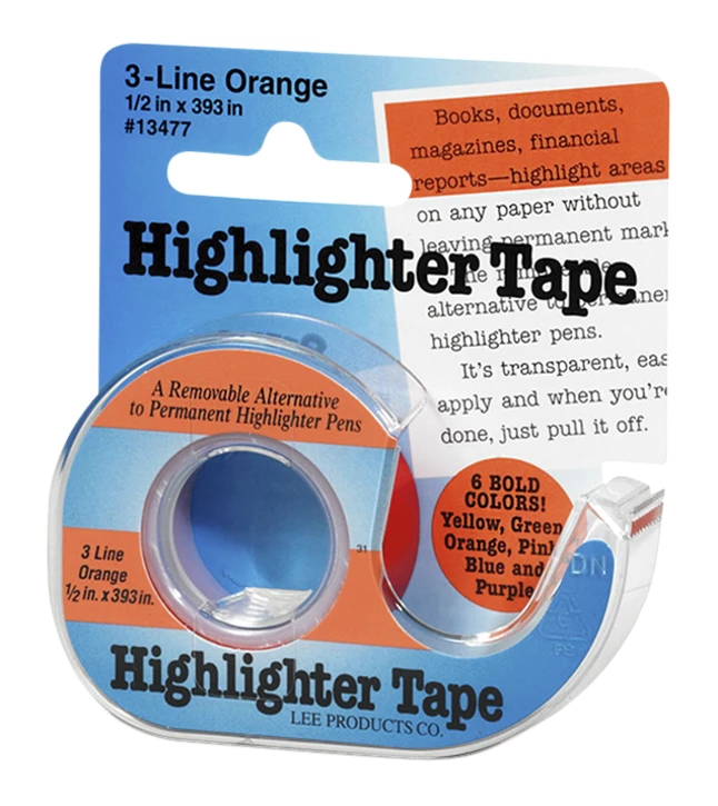 Brand new ๐คฉ Lee Products Lee 3-Line Removable Highlighter Tape, 1/2 X 393 Inches With Dispenser, Orange ๐