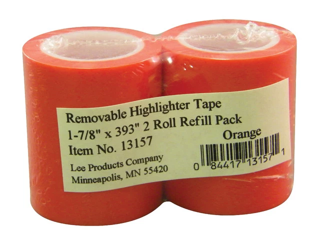 Lee Wide Orange Highlighter Tape Refill measuring 1-7/8 in wide highlights 3 lines of print or spaces. Easy to use by just tearing off as much or as little as desired, applying and/or repositioning it and removing it without residue when its done. Notes or highlighted text can be written on it. For use with 13154 Empty Dispenser.