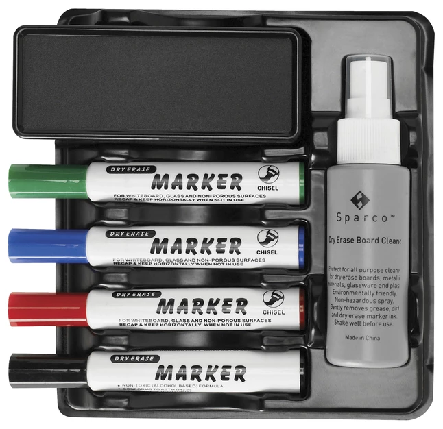 Lorell Magnetic Eraser Caddy Kit includes four markers along with one cleaner and one eraser in a black holder base. Caddy kit with mounting tape measures 8 in x 7 in x 2-13/16 in comes in black color and it contains double sided tape as well as magnetic strips for easy mounting.