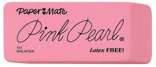 Paper Mate Pearl Eraser is great for correcting pencil mistakes in school, at home or at the office. 100% Latex-free premium eraser with beveled ends is soft and pliable for smudge-free erasing every time. Large sized pink eraser is sold as 12 per pack.