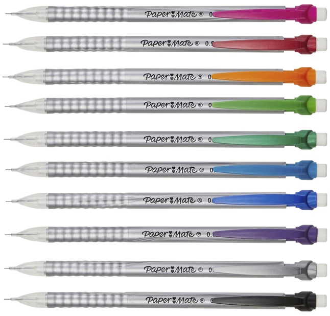 With 50 percent more lead, these mechanical pencils help you spend more time writing and less time at the pencil sharpener. Slim design is built to handle demanding classrooms, fast-paced offices and beyond. The No. 2 lead is preferred for standardized testing and great for school lists. Smudge-resistant eraser keeps your writing clean. 0.5mm lead is perfect for detailed writing.