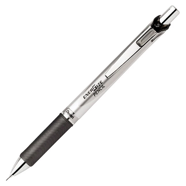 Pentel EnerGize 0.5 mm Deluxe Black Mechanical Pencil features a latex-free grip that offers maximum control as well as control. Pencil has slim and elegant barrel design featuring stainless steel accents to render a professional appeal. Pencil protects pockets and purses with completely retractable tip. It can be refilled using super hi-polymer lead and Z2-1 refill eraser.