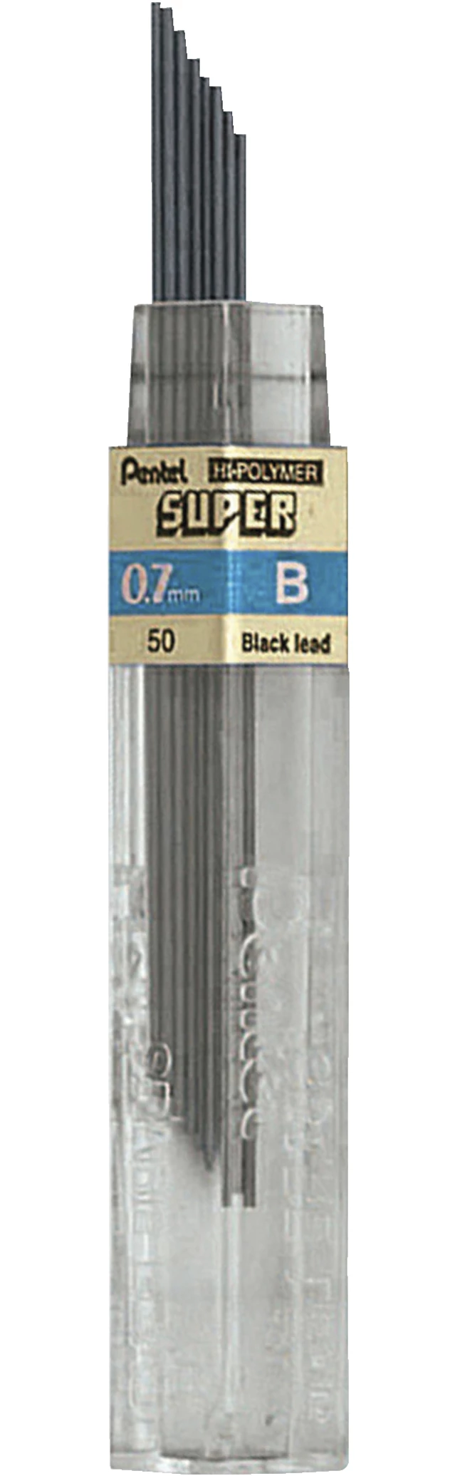 Pentel Super Hi-Polymer 0.7 mm B Black Lead for all mechanical pencils is 60 mm long and extra strong for reduced breakage. It offers increased strength, a darker line, minimal breakage, less smudging with patented manufacturing process.