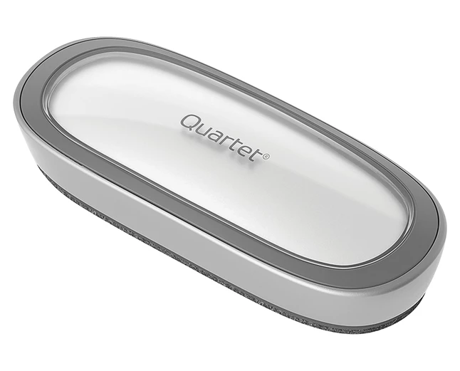 Dry-erase board eraser features a dual-action design that captures dust and scrubs the board simultaneously for a clean surface with no streaks, stains or dust. Its comfortable grip allows you to accurately wipe down surfaces to keep you from accidentally erasing important information. Compact size fits on most accessory trays to ensure it always stays within quick reach. Or, store the eraser in the included magnetic caddy. Dry-erase board eraser is optimized for use on glass dry-erase boards.