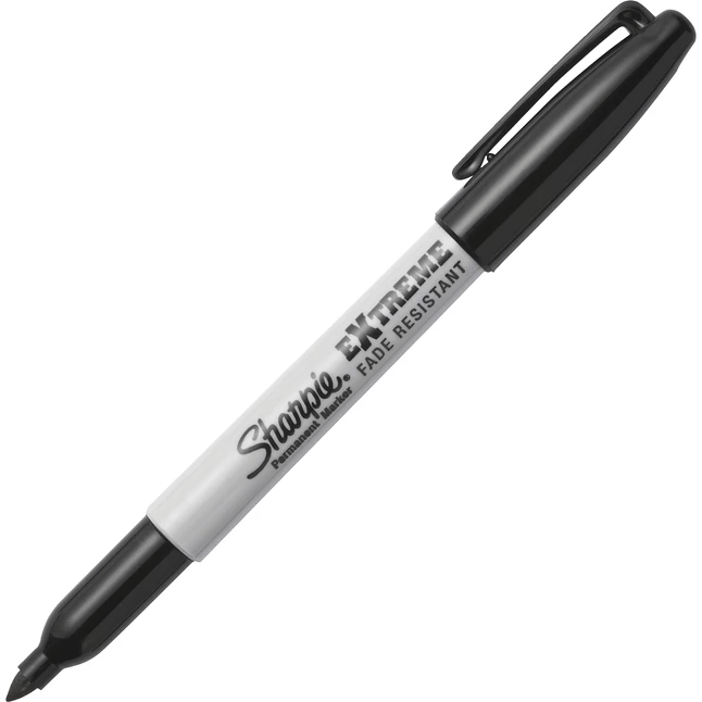 Sanford Sharpie Extreme Permanent Markers offer the ultimate fade-resistant marker that withstands the most extreme conditions. Specifically formulated ink provides up to 96 hours in ultraviolet exposure and increased adhesion on most surfaces. The high-porosity nib design delivers more ink, wider lines and higher contrast colors for bolder marks. Ink is formulated with the bold color of dyes and the strength of pigments. Premium permanent marker is ideal for tough conditions across a range of surfaces and offers increased adhesion to plastic surface. The line width is 0.9 from the 1.1 mm. tip.