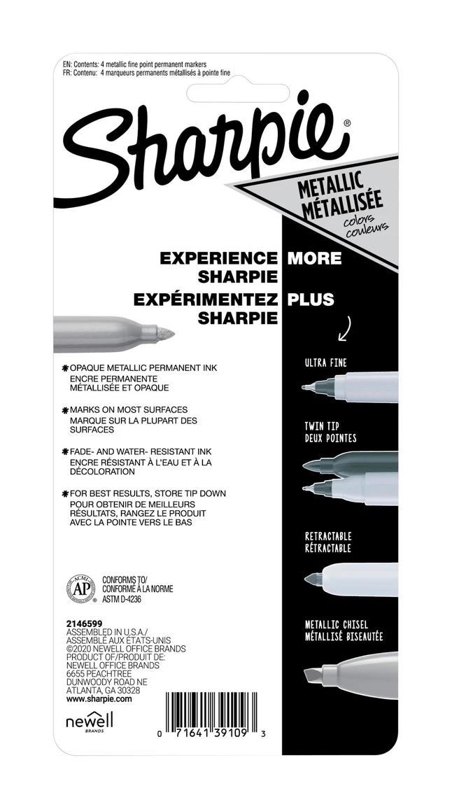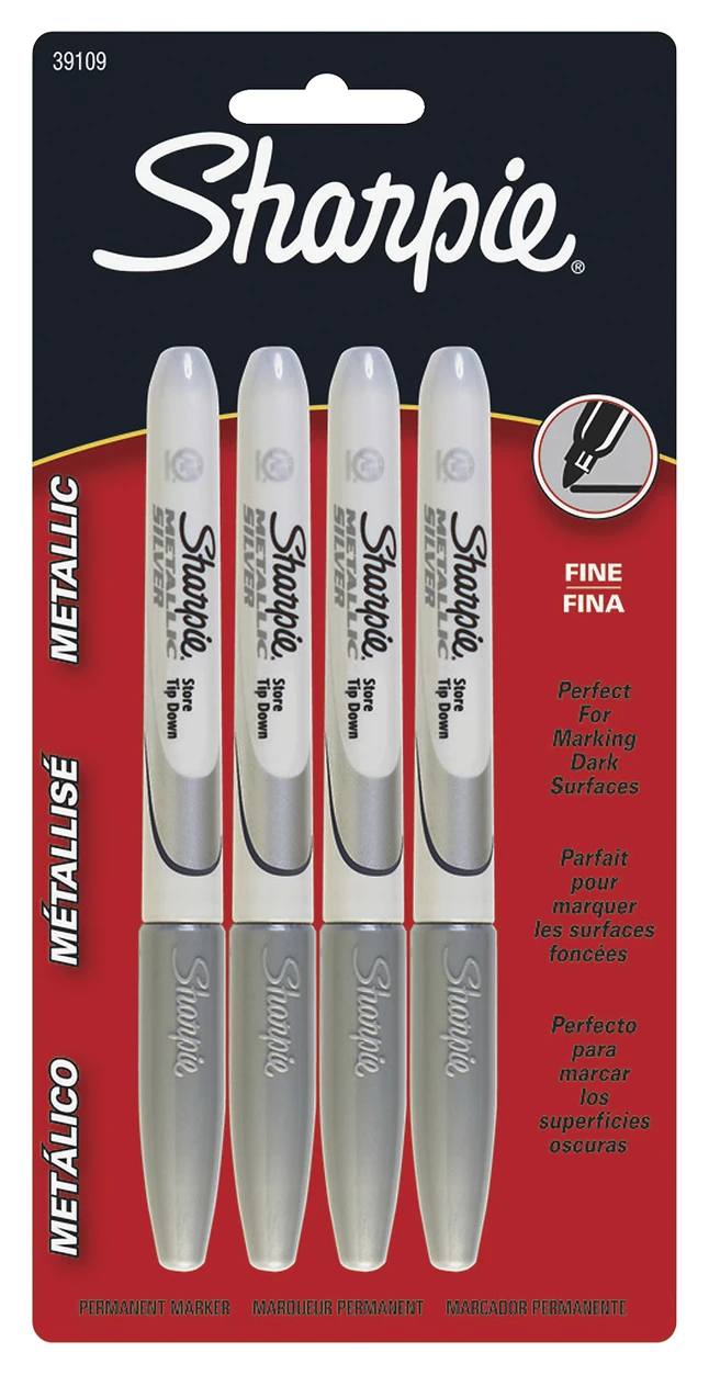 Permanent ink is fast-drying, quick-flowing and water-resistant. Metallic Sharpie marker features a tough, resilient 0.5mm tip. Durable fine point does not fray. Certified AP nontoxic ink is ideal for marking on dark-colored materials.