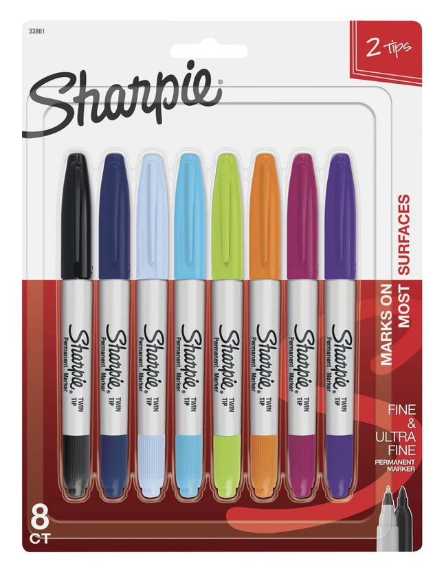 Sharpie Tw Inches Tip Permanent Marker, Fine, Ultra Fine Point Type, Assorted Alcohol Based Ink, 8 / Card