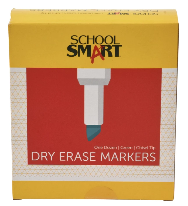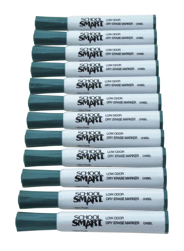 School Smart Dry Erase Chisel Tip Green Marker features low-odor, non-toxic ink formula that is easily erasable while providing smooth ink flow. This marker produces rich, solid and bright colors on whiteboards, glass and other non-porous surfaces.