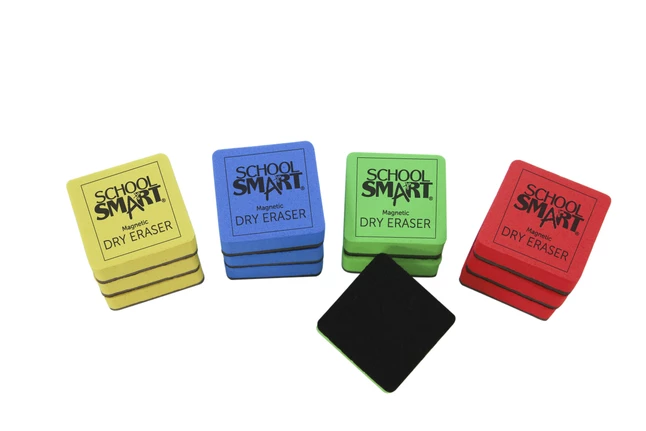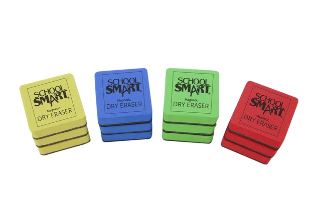 - Magnetic backing on each eraser adheres to any metal backed whiteboard or steel surface