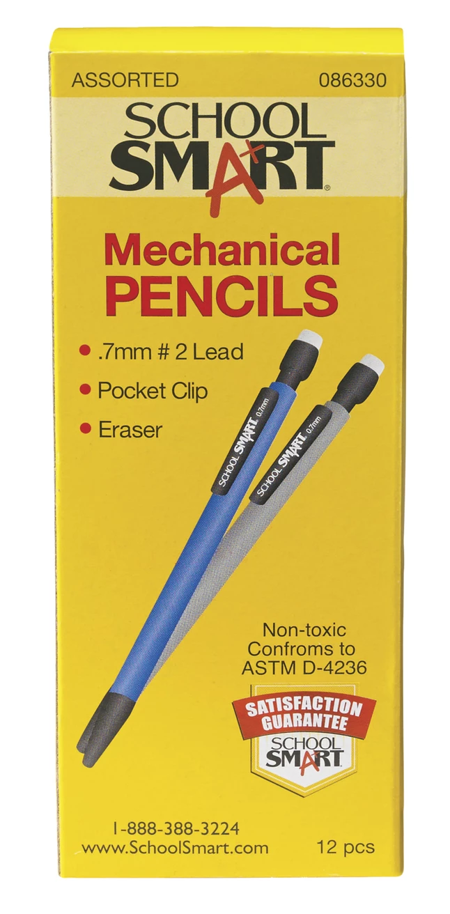 Promo โค๏ธ School Smart Mechanical Pencils With Erasers, 0.7 Mm Tip, No 2 Lead, Assorted Colors, Pack Of 12 ๐Ÿงจ