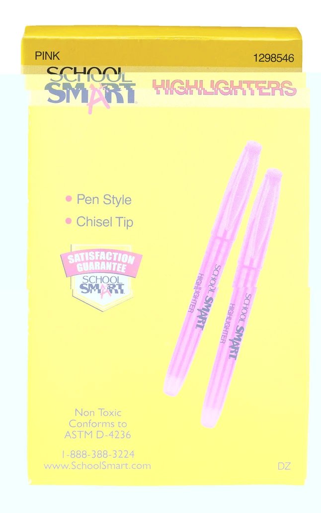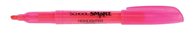 School Smart Pink Pen Highlighter features a chisel tip for wide or fine highlighting and see-thru ink is bright. Sold as 12 per pack.