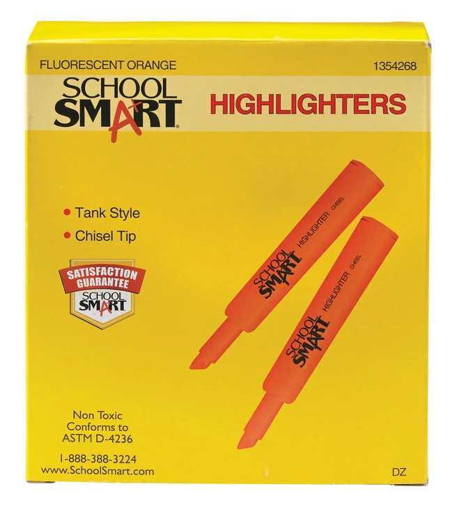Best reviews of ๐ School Smart Non-Toxic Tank Style Highlighter, Chisel Tip, Orange, Pack Of 12 ๐