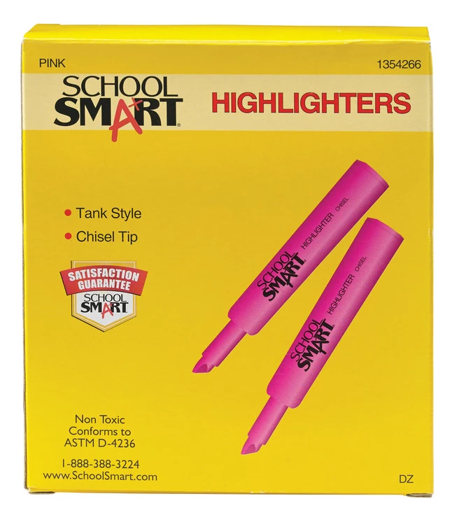 Discount ๐ School Smart Non-Toxic Tank Style Highlighter, Chisel Tip, Pink, Pack Of 12 ๐คฉ
