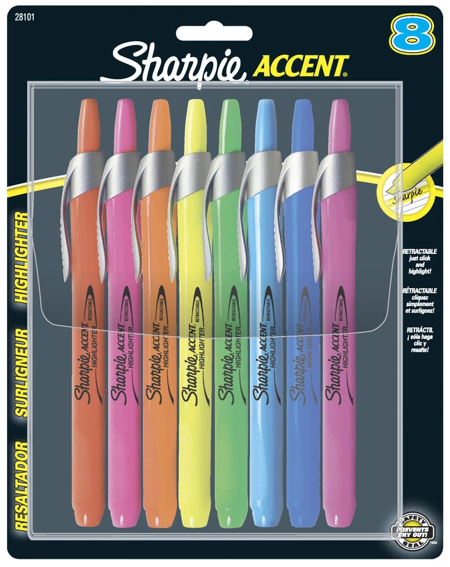 - With an easy push-button, Sharpie accent retractable highlighter delivers the convenience of one-handed highlighting