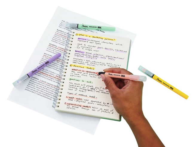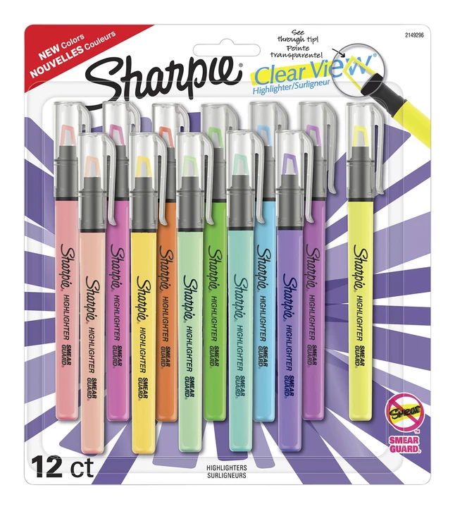 See where you’re marking with the Sharpie Clear View highlighter! A see-through tip allows you to keep your eyes locked on the page and precisely highlight-you’ll always know where to stop! Meanshile, the innovative blade-style tip lets you switch between both wide and narrow lines. Sharpie highlighters come with ultra-vivid ink that jumps off the page while resisting the smearing of many pen and marker inks, so your work stays clean.