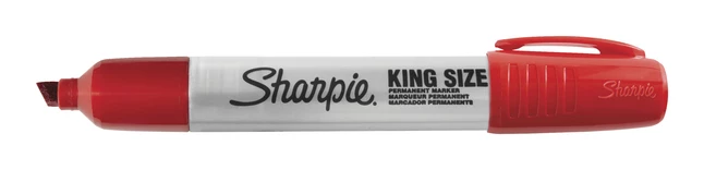 Sharpie King Size Permanent Marker is rugged for long-lasting durability. Specially made for industrial users, these bold markers write on greasy, wet and oily surfaces while the extra durable barrel withstands heavy use. Large markers create clear lines on plastic, wood, stone, foil, metal, corrugate and leather. Quick drying ink is fade and water resistant.