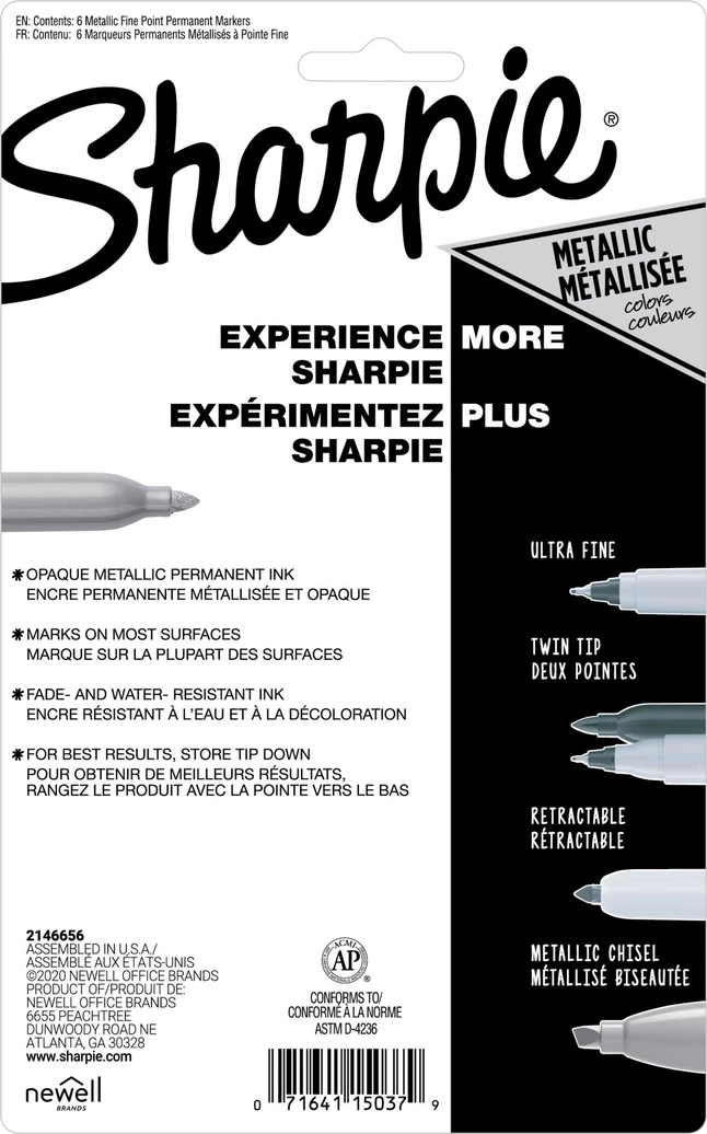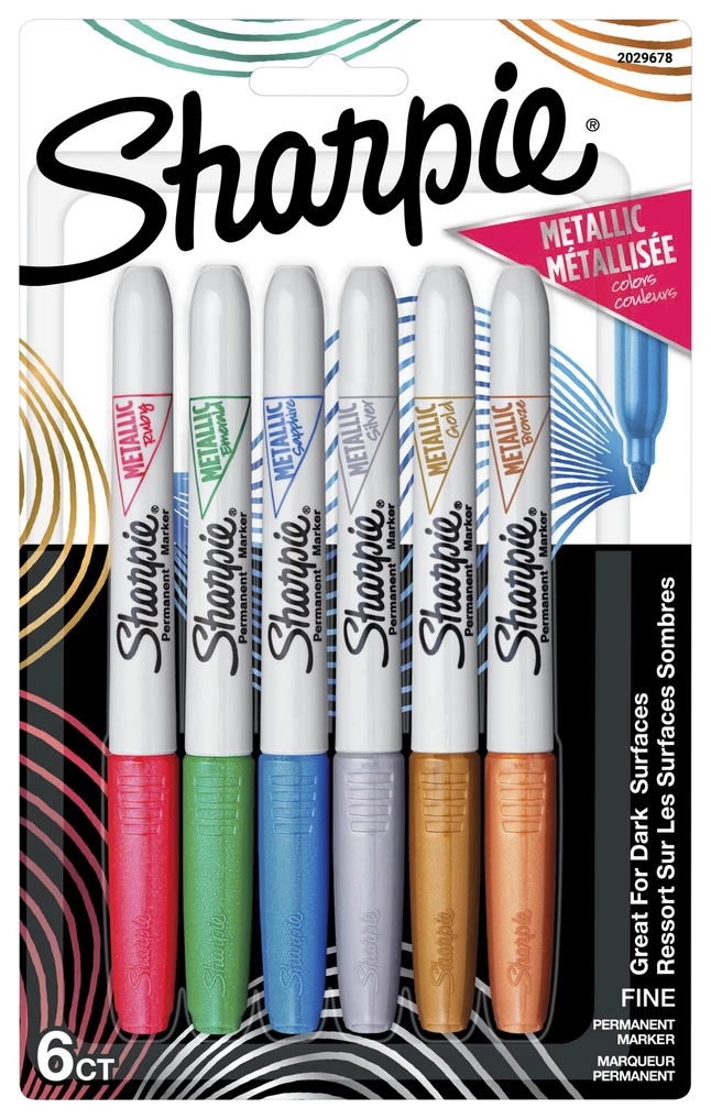 - Write, draw, label, and make shimmery designs with Sharpie Metallic permanent markers