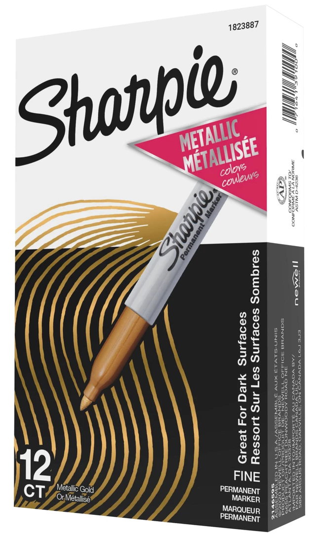 Never dull and always brilliant, Sharpie Metallic Fine Point Permanent Markers leave glimmering marks nearly everywhere your imagination dares to wander. Putting pale imitations to shame, Sharpie Metallic Markers lay down a pure, brilliant metallic sheen that boldly stands out, particularly on dark surfaces. Each Sharpie Metallic Fine Point Marker is filled with quick-drying, fade- and water-resistant ink that’s designed to make magnificent marks on almost any surface. Add weight to your words with your choice of metallic finishes: gleaming gold, striking silver and brassy bronze.