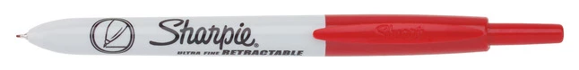 Sharpie Retractable Red Ultra-Fine Permanent Marker assures precise marking and writing and features a unique safety seal valve design that prevents the marker from drying out. Marker includes no cap and thus eliminates the need for capping and uncapping as well as lost caps. It allows easy one-handed operation and is sold as 12 per pack.
