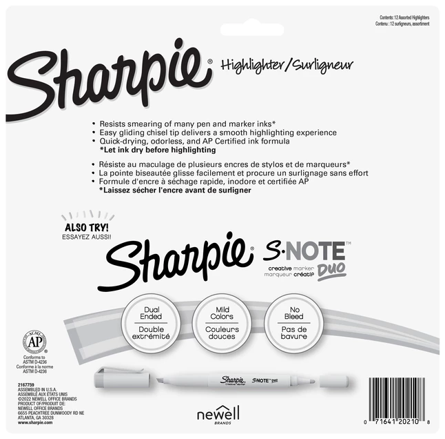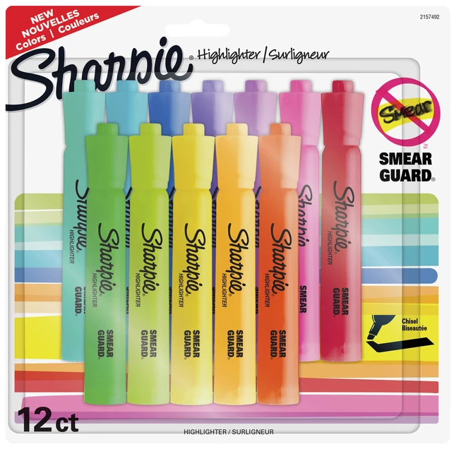 Perfect for when info is high priority and precision is a must, Sharpie Highlighters make everything highly visible with transparent, smooth, and quick-drying ink. These wide-barreled tank highlighters feature a large ink supply for dependable and long-lasting use and an easy gliding chisel tip that highlights and underlines both wide and narrow lines of text. The quick-drying ink resists smearing many pen or marker inks, while the versatile chisel tip highlights and underlines both wide and narrow lines of text. And with an array of brilliant colors, these Sharpie highlighters are perfect for softer highlighting that still stands out on the page. It’s no wonder why Sharpie is the got-to-have highlighter for life’s major high points.