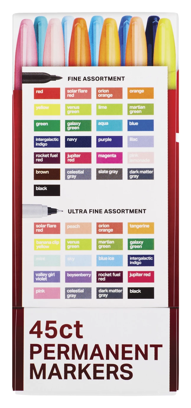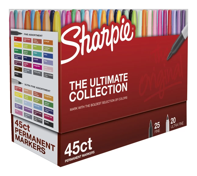 - Large pack of 45 Sharpie permanent markers (25 with Fine tip, 20 with Ultrafine tip) provide color, eye-catching fun and function for projects, notes, drawings and beyond for all ages