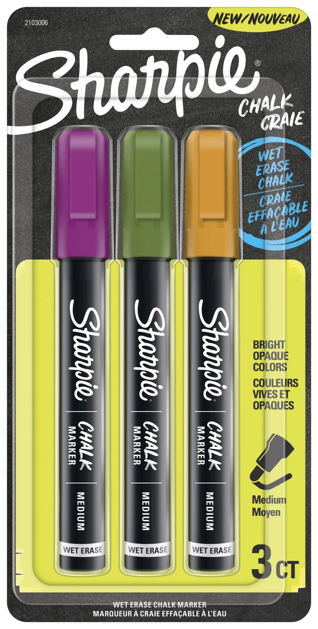 - Sharpie chalkboard markers with medium tips give the illusion of chalk writing without the dusty mess