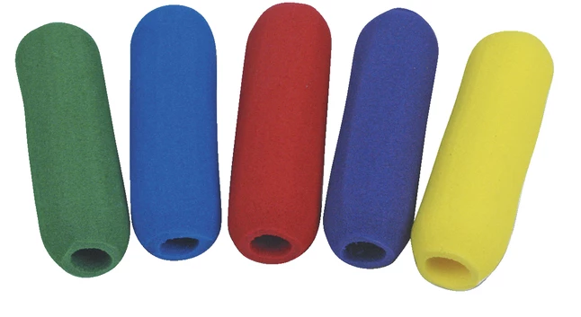 High quality basic foam pencil grips are designed for right and left handers and made from pliable, non-toxic material. Each grip is approximately 1-1/2 inches long. Assorted colors include Blue, Purple, Green, Yellow and Red. Colors may vary.