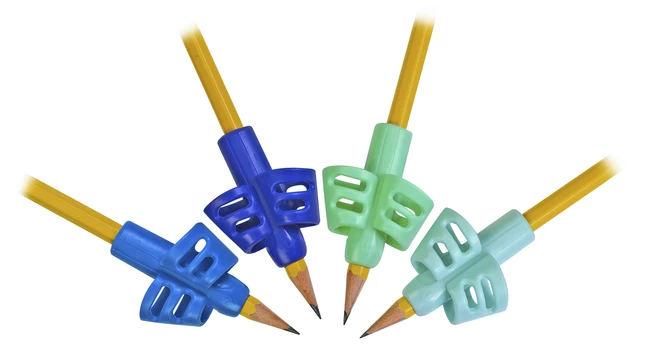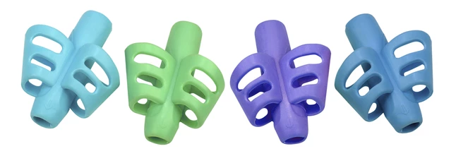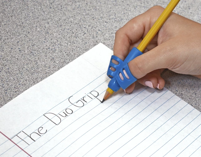 The Duo Grip is designed to make writing easy. An important teaching tool to train young hands for gripping correctly, this high quality grip improves handwriting, provides more control, and reduces hand fatigue. Easy to use: just put your thumb and index finger into the holes, which are designed to suit your fingers properly. Available in assorted colors.