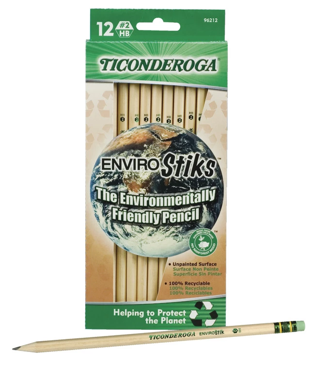 Ticonderoga EnviroStik Number 2 Soft Pencil features a lacquer-free finish. Pencil is made of reforested premium wood and is sold as 12 per pack.