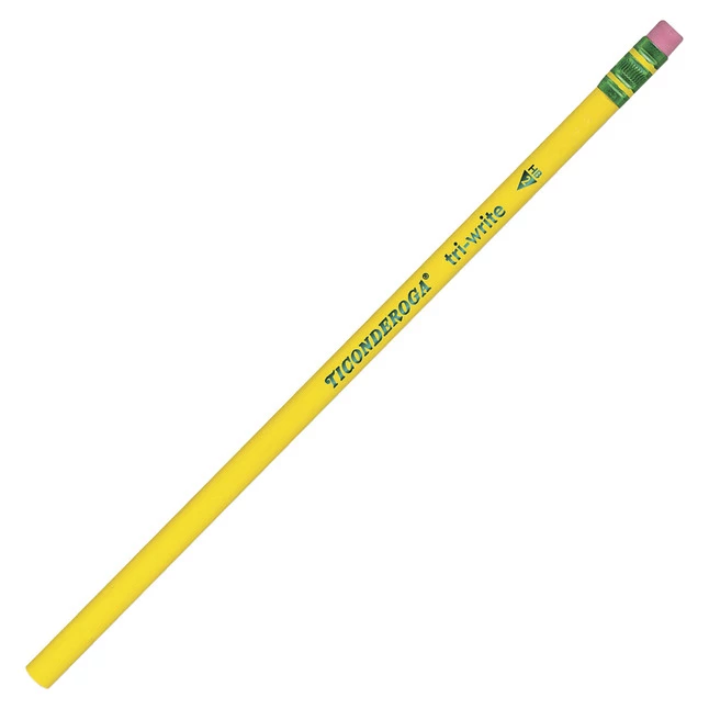 Ticonderoga Tri-Write and Tri-Conderoga Number 2 Soft Yellow Pencil is made of premium wood that allows easy sharpening and features unique graphite core formula to render smooth writing. Non-toxic pencil has a triangular shape that positions fingers correctly and is a great writing tool. Pencils do not come pre-sharpened. It is sold as 12 per pack.
