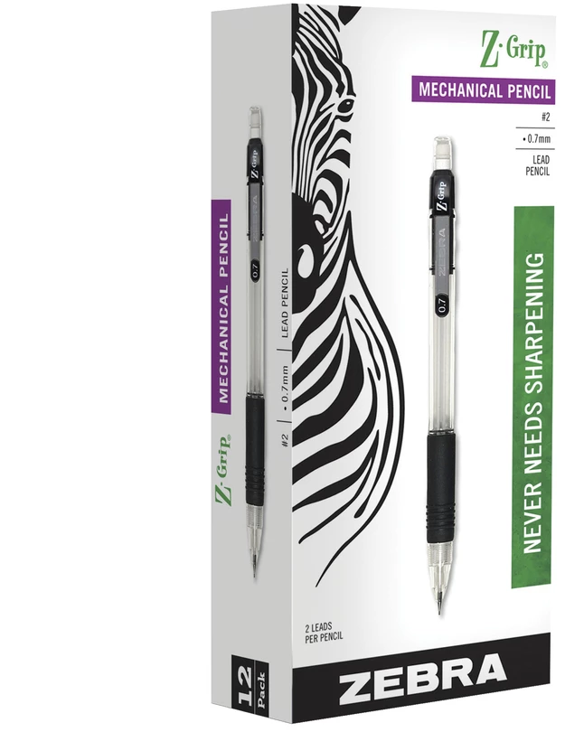 Zebra Z-Grip 0.7 mm Black Mechanical Pencil features ribbed rubber grip for writing comfort as well as control. Economical pencil is of superior quality and is refillable with standard lead. Pencil comes with clear barrel that shows the amount of lead supply.